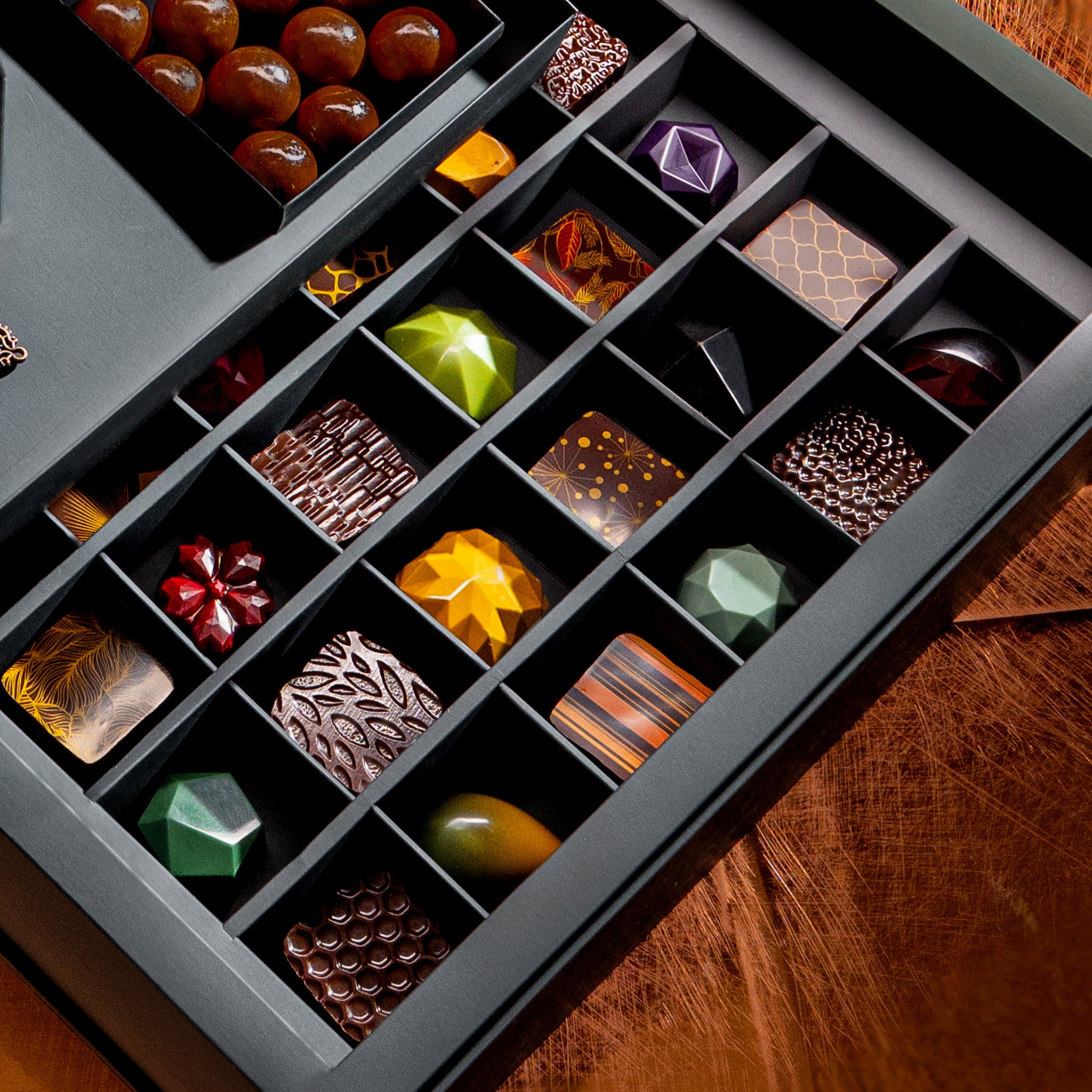 And while we are on the subject of "every", here's a bit of everything we do -- a chocolate bar, two types of dragees, a handful of pralines and a big-big heart.