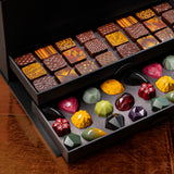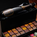 This box is the latter. It features a bottle of proper champagne to get any feet going and 48 pralines.