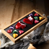 Anyway, we're here to love, not hate. This box has two big hearts with tonka beans caramel, a bergamot ganache, and а hazelnut gianduja. Right next to the two are ten little hearts: